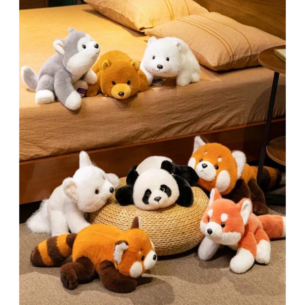 Мягкая игрушки лежебоки крокодил, собака, волк, красная панда, капибара