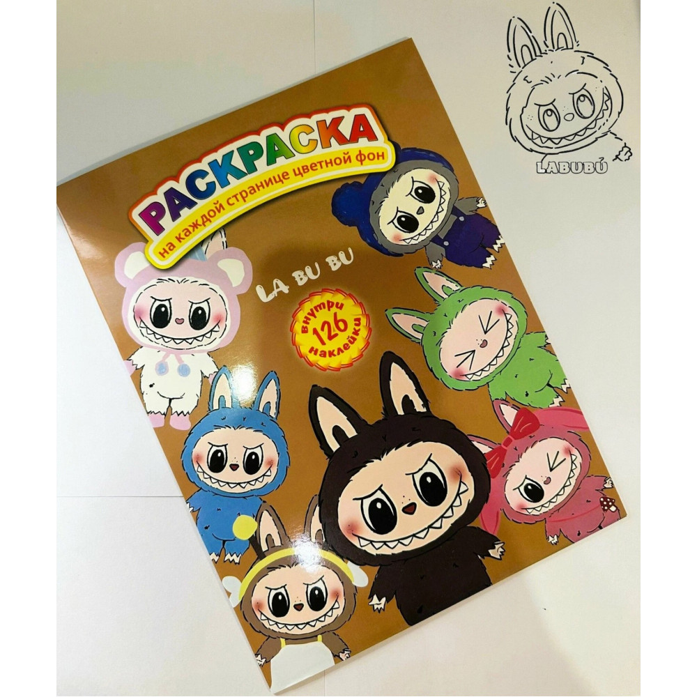 Раскраска " Лабубу "с наклейками(126 шт.) и цветными страницами