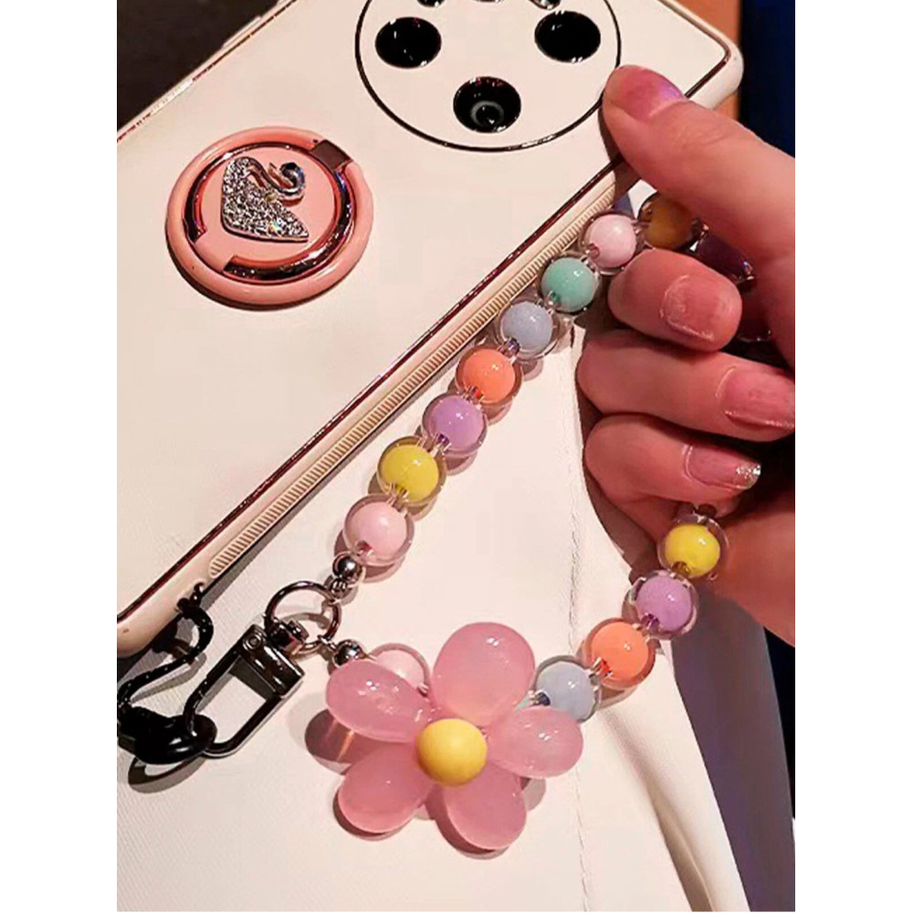 Декоративный брелок обвес для телефона с ромашкой , для защиты телефона от падений разноцветная