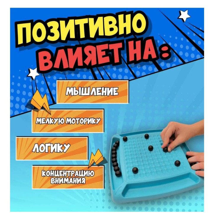 Если вы увлекаетесь настольными играми и любите развивать свою логику, то эта игра точно для вас! "Магнитный Бой" – это магнитная игра, в которой используются специальные магнитные шарики и пластиковое поле. В этой игре вы можете играть как одним, так и вдвоем, втроем и даже вчетвером, что делает ее идеальной для семейного времяпровождения или вечеринок с друзьями. Благодаря магнитам шарики легко прилипают к полю и не соскальзывают, что делает игру очень удобной. Одним из главных преимуществ игры "Магнитный Бой" является ее положительное влияние на развитие мелкой моторики и логического мышления. Это поможет развить вашу интуицию и способность прогнозировать ходы противника. Она помогает развивать их воображение, логику и концентрацию внимания. Магнитные шарики привлекают внимание малышей.