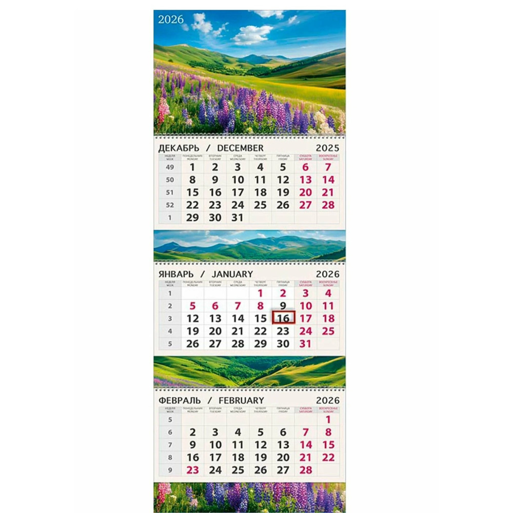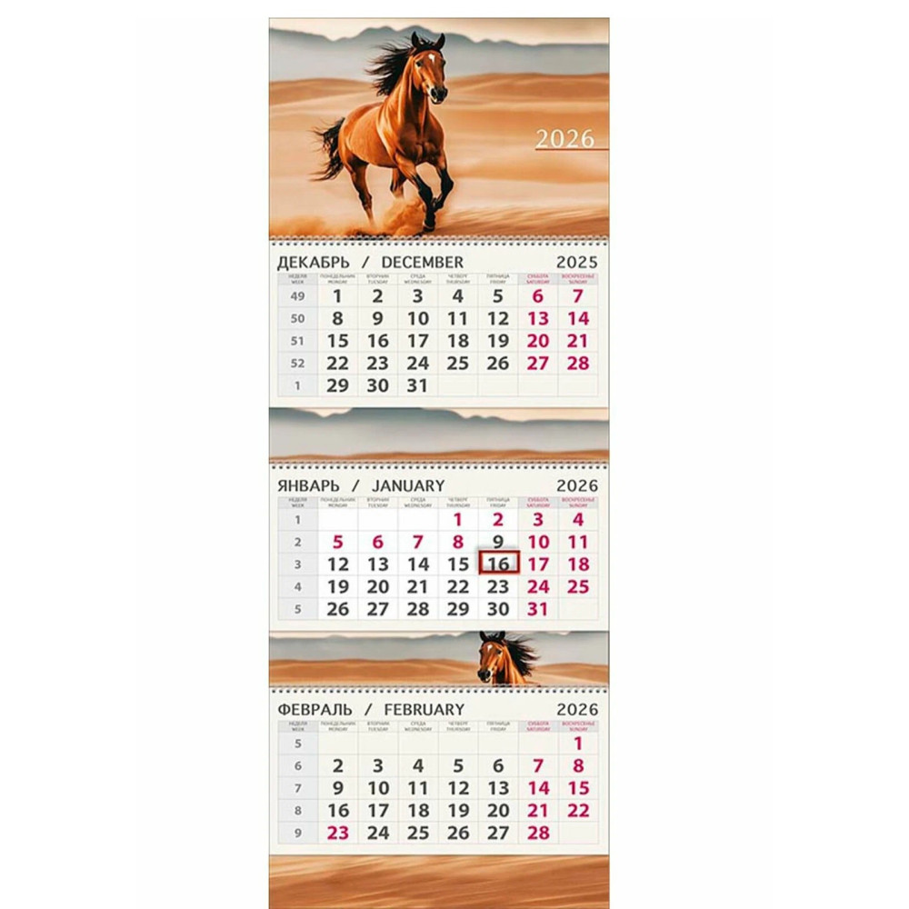 Календарь настенный квартальный 3 блока 2026 год (Ассорти) (блёстками)
