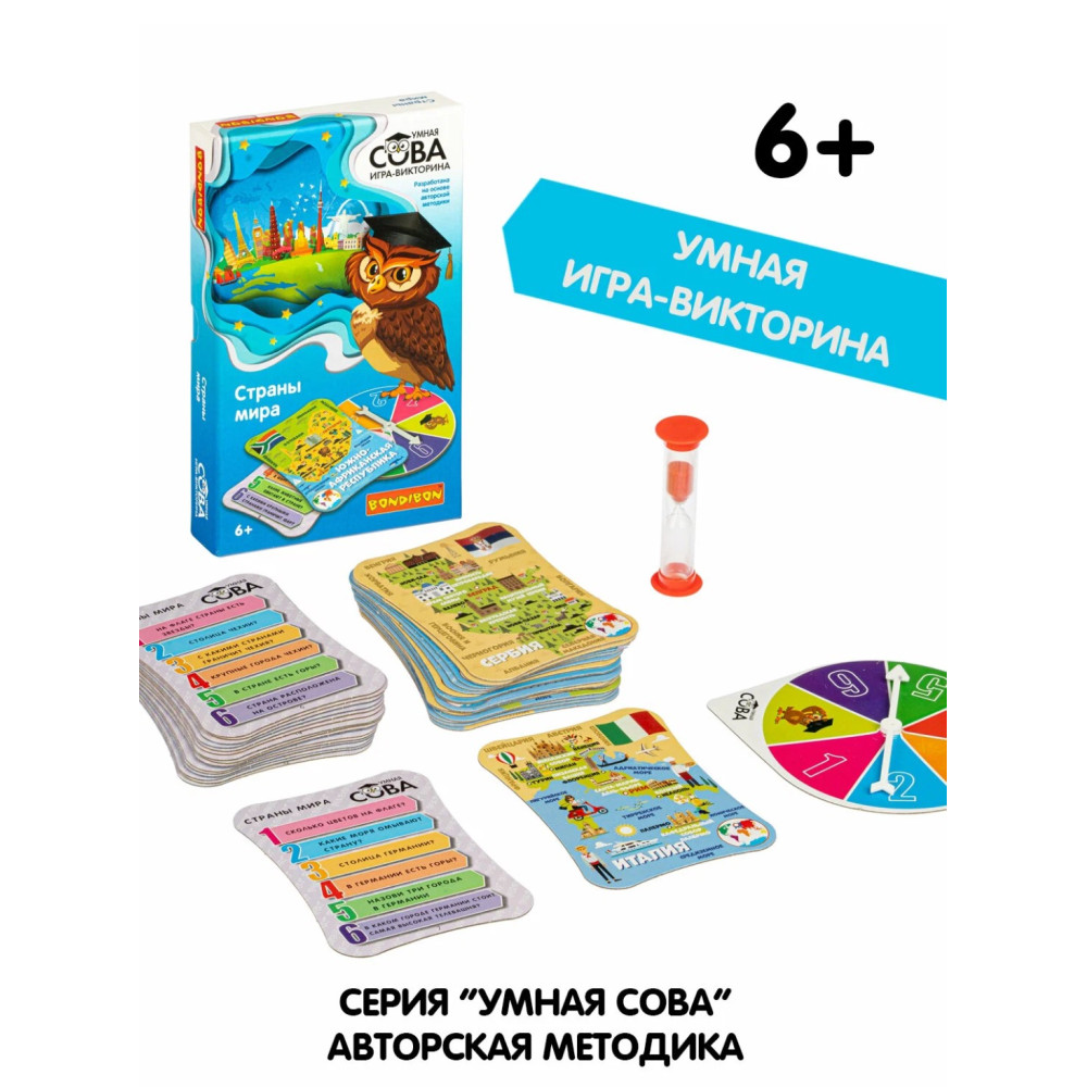 Игра викторина Мой первый путеводитель Страны мира из серии Умная Сова от Bondibon — это уникальный развивающий игровой набор, способствующий познавательному развитию и расширению кругозора у детей. Развивашка в которой ребенок вместе с друзьями, семьей или классом учится изучать географическое положение, достопримечательности, флаги, города, язык, национальные блюда и валюты 32 стран, расположенных в Европе, Африке, Америке и Азии. Это не просто полезное развлечение, а настоящий тренажер для развития эрудиции и интеллекта ребенка. В процессе игры дети учатся логически мыслить, тренируют память, внимание и усидчивость. Игра помогает изучить страны на карте мира и развивает интерес к путешествиям. Изучение географии через игровые карточки помогает формировать базовые знания о мире. Настольная игра – прекрасный подарок мальчику и девочке на день рождения, Новый год или 1 сентября. А также полезный сюрприз на выпускной в детский сад или школу.
